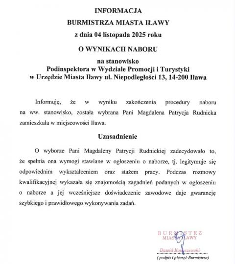 Czy Pani córka, MAGDALENA RUDNICKA, "wygrała" konkurs na intratne stanowisko podległe burmistrzowi Kopaczewskiemu w Urzędzie Miasta Iławy?