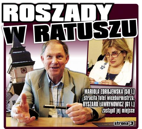 Niestety burmistrz nie tylko nie potrafi podać powodów, lecz jeszcze nakręca kolejną spiralę nastrojów – fotel wiceburmistrza nie wiadomo dlaczego straciła również MARIOLA ZDROJEWSKA (50 l.). Zasiadł na nim Ryszard Ławrynowicz (61 l.).