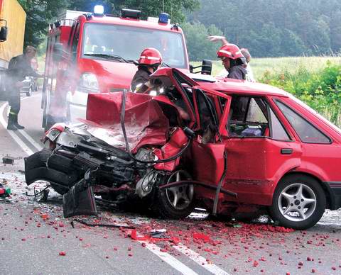 Szanse 22-letniej dziewczyny na przeżycie były małe. Była zakleszczona, wręcz wbita w kierownicę forda. Choć lekarze walczyli ze śmiercią, dziewczyna zmarła na stole operacyjnym (na asfalcie widać porozrzucane truskawki).