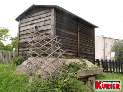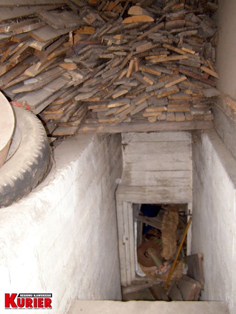 Tak wygląda szopa maskująca od środka. U góry dechy i opony właściciela, na dole zejście do bunkra