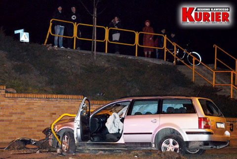 Na aleję Jana Pawła II (w pobliżu ronda przy cmentarzu na ul. Ostródzkiej) spadł volkswagen passat kombi prowadzony przez Tomasza M. (21 lat) z gminy Lubawa.